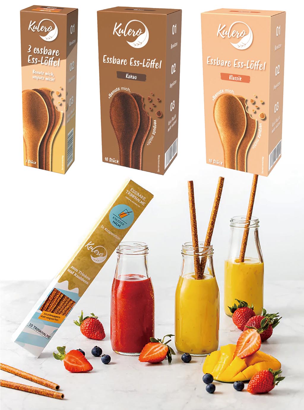 Kulero的素食湯匙堅固耐用,在熱液體或湯中可以使用30分鐘,在冷餐中可使用60分鐘。這家新創公司已經成功替換了500萬把塑膠湯匙。該公司目前所提供一系列產品,包括可食用湯匙、可食用吸管和杯子,以及可堆肥的碗和盤子。