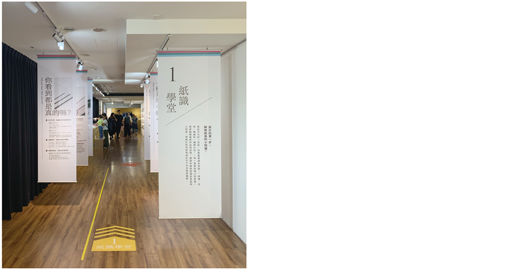 (一)紙識學堂:理解紙的結構與質感╱該展區主要介紹紙張的基本特性,幫助觀眾學習判斷與運用不同紙材。展區涵蓋紙張厚度與磅數的計算方法、觸感與透光差異、塗佈與未塗佈紙的表面處理、酸鹼性對壽命的影響,以及纖維排列方向(絲向)和內部結構對支撐力的作用。透過這些內容,觀眾可全面理解紙材的特性與應用邏輯。(見圖2)