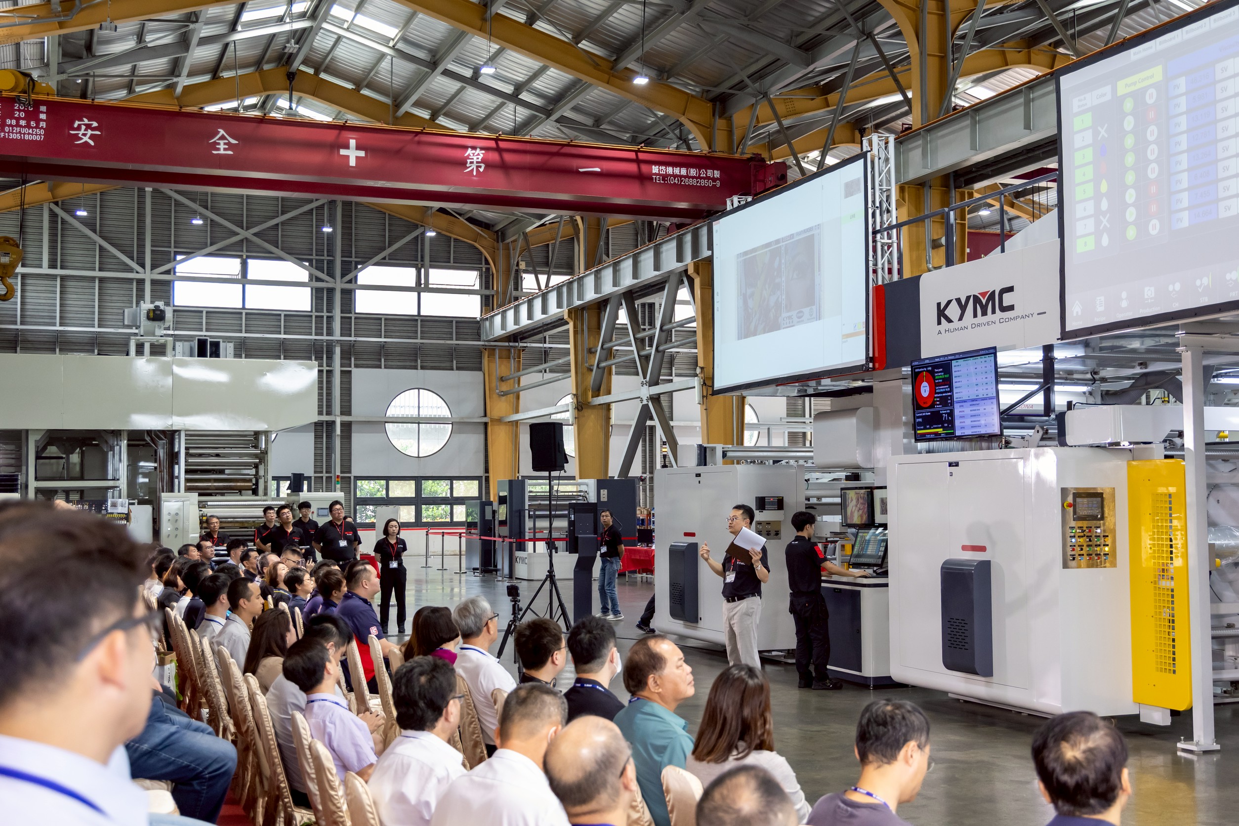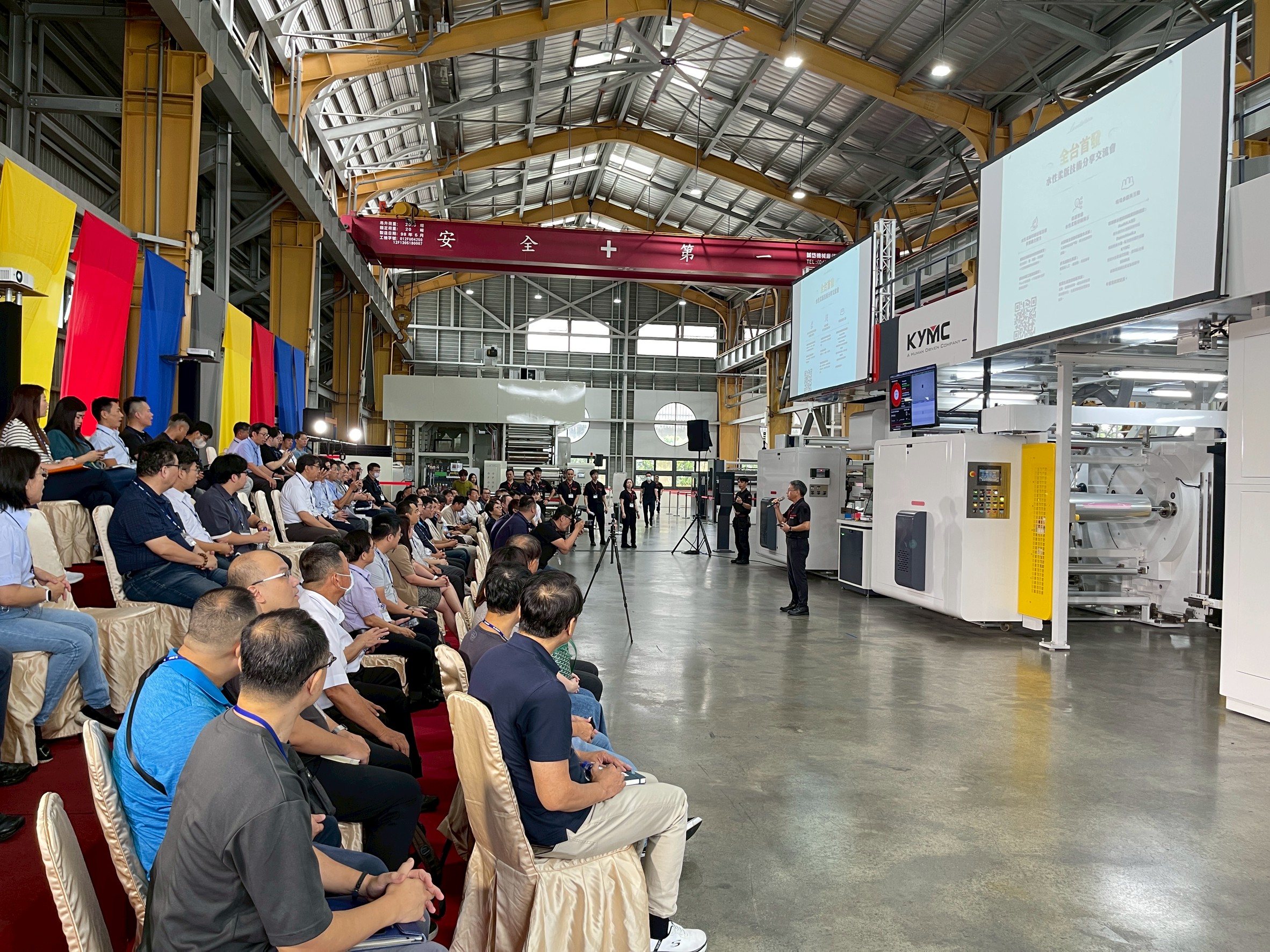 自 1968 年創立以來,KYMC 深耕印刷設備領域超過半個世紀,十多年前更率先與國內大廠成功將薄膜水性印刷技術成功導入量產,長年保持業界領航地位。隨著環境規範趨嚴,VOCs 及溶劑使用限制日增,水性印刷不僅代表趨勢,更成為現階段最理想的解決方案。本次交流會不僅呈現最新綠色技術,也針對少子化、勞力短缺所帶來的智慧化需求,將AI 演算、邊緣運算技術在生產與管理上的應用提出前瞻性的解方。