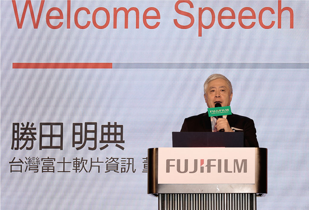 活動一開始由台灣富士軟片資訊董事長勝田明典代表致詞,他誠摯歡迎大家撥空參與此次品牌日,也感謝每位一起投入數位轉型的夥伴。今年以「敏捷協作,共創營運效能(Streamlining Your Agile Workflow)」為活動主題。主要談論的是運用數位工具,達成人與流程的無縫連結,讓不同崗位的人,都可有效發揮即戰力,更快、更順暢、更有彈性地完成工作,提升營運的效能。