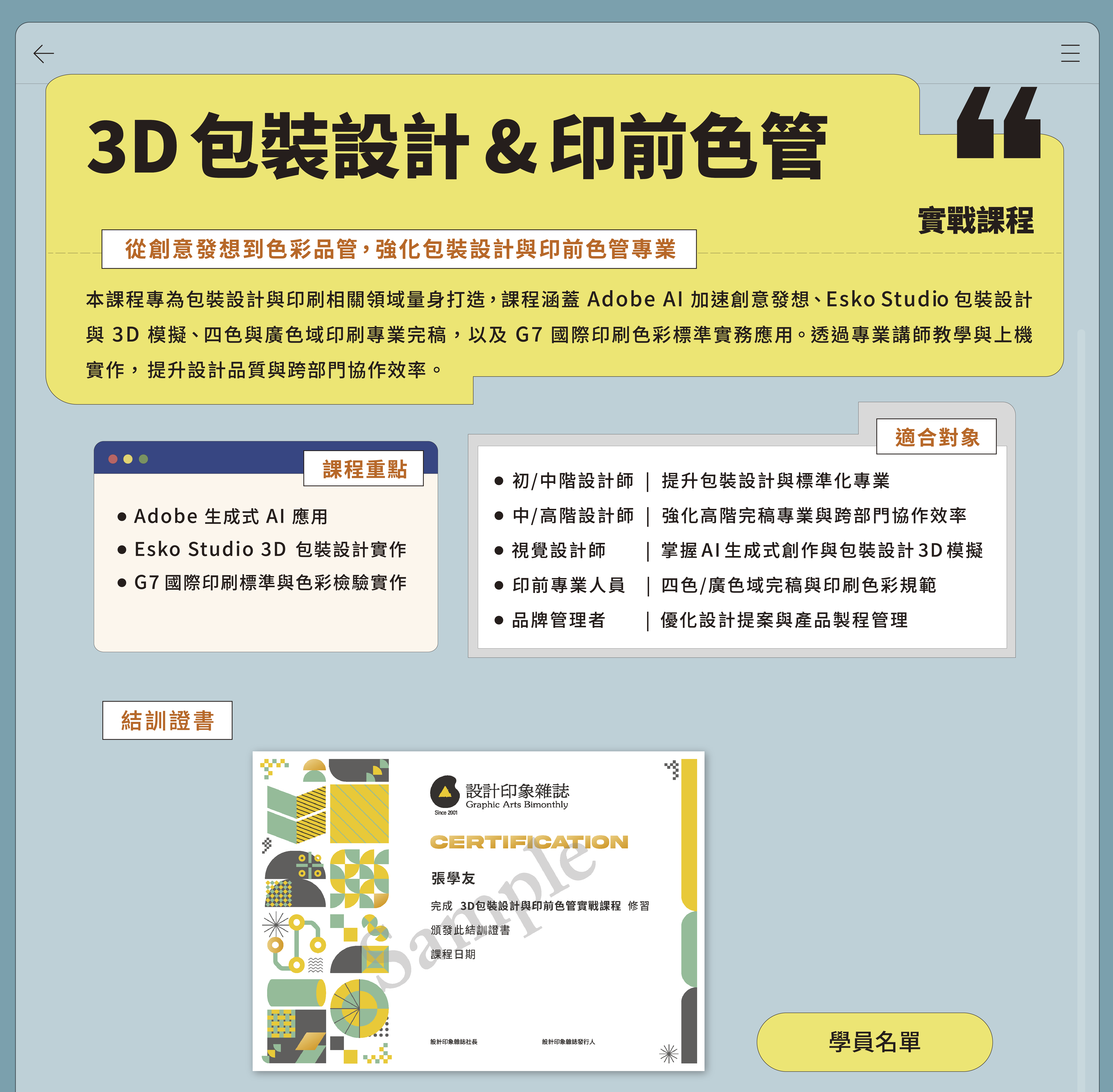 3D 包裝設計與印前色管實戰課程