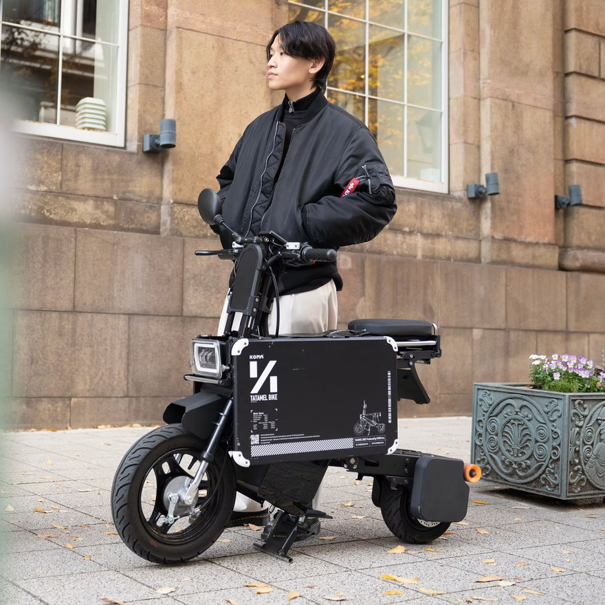 這款名為 Icoma Tatamel Bike 的電動機車,可以折疊到如同登機箱般的尺寸。
