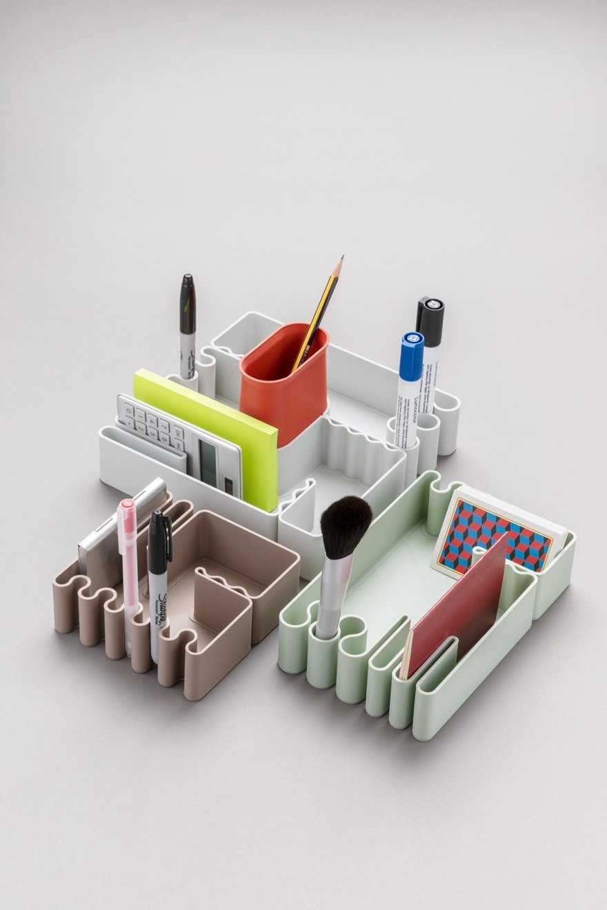這款 bFRIENDS 桌面收納系列由英國工業設計公司 Pearson Lloyd 設計,由英國製造商 Batch.Works 以回收的植物性塑料(原為包裝材料)3D 列印而成,為辦公桌帶來充滿活力的景象。