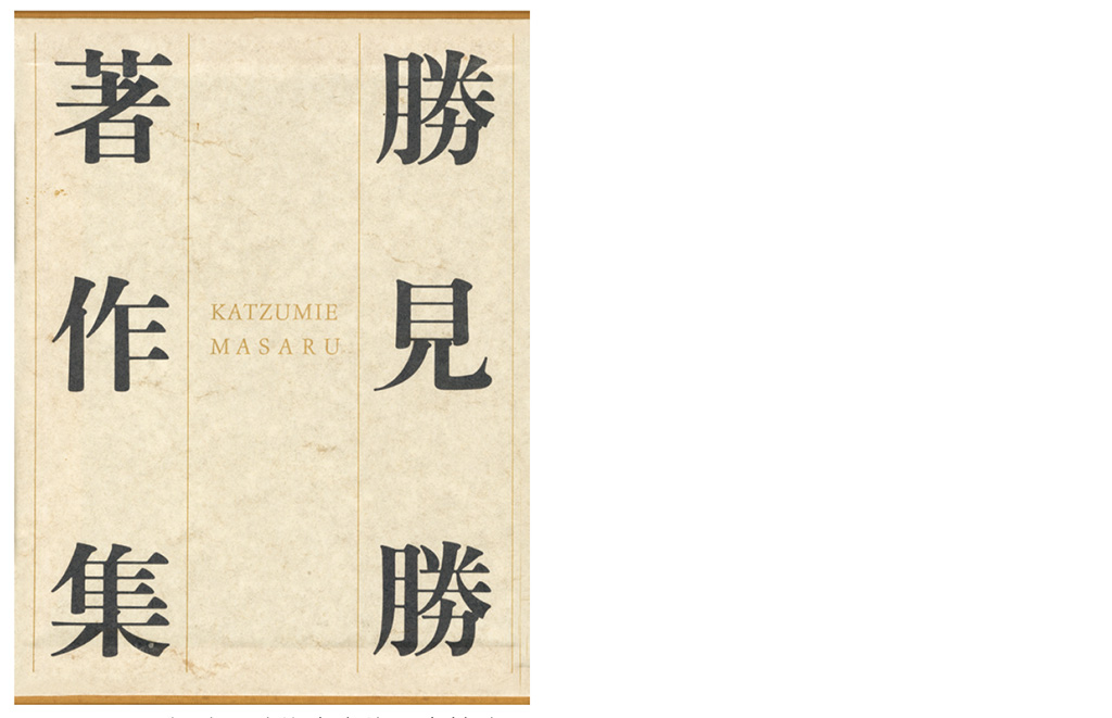 ●圖2:1983年勝見勝往生之後,由於勝見勝對於推動日本現代設計具有卓越的貢獻,日本平面設計師協會、東京藝術指導俱樂部、東京字體指導俱樂部、日本插畫家協會、日本設計委員會在東京共同舉辦「追悼勝見勝」委員會,由龜倉雄策擔任主席,決議設置「勝見勝賞」並且編輯出版《勝見勝著作集》,由龜倉雄策、清家清、原弘三人監修,出原榮一編集,原弘裝幀設計,1986年由講談社出版,本套叢書計有:(1)美學‧教育論、(2)設計運動、(3)平面設計、(4)作家論、(5)隨想‧年譜共五冊,完整蒐集勝見勝生前所發表的論述,藉此得以認識其設計思維及參與設計活動的梗概
