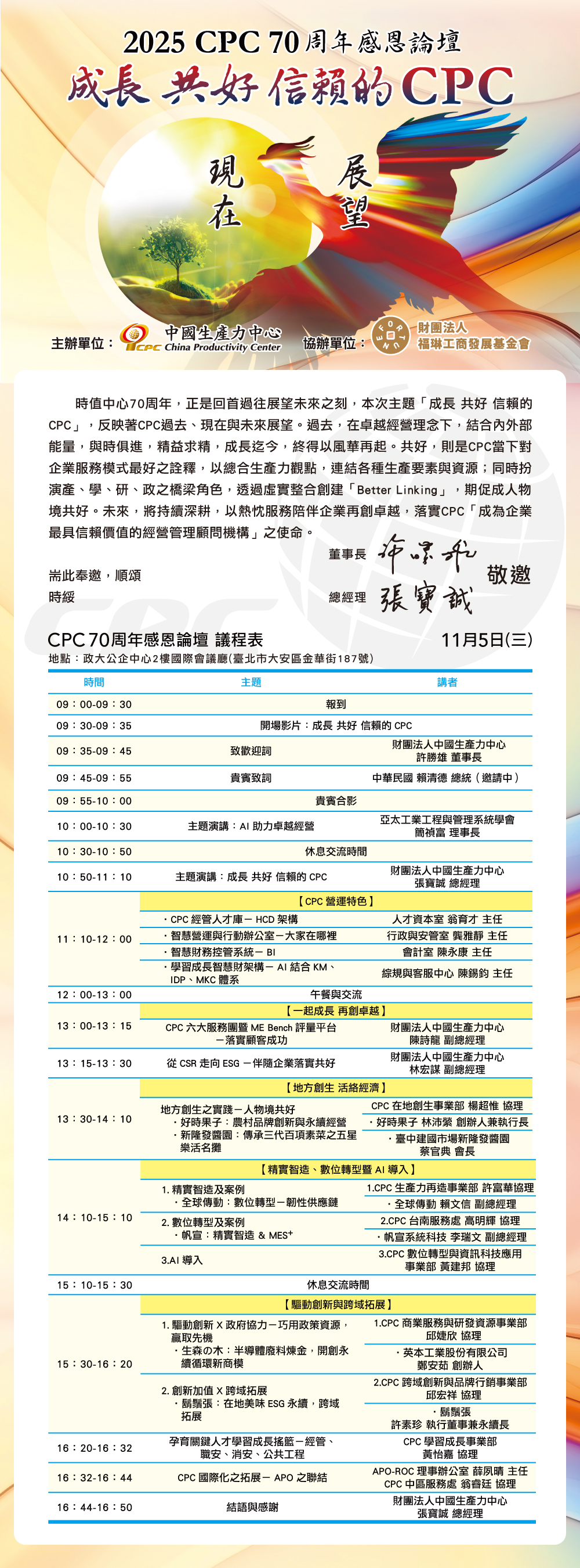 以「成長・共好・信賴的CPC」為題,回望精進歷程、連結產學研政、共創企業新價值!