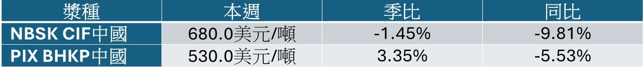 據多個中國網站報導整理,智利 Arauco 公司公佈新一輪 10 月木漿外盤報價:針葉漿銀星680 美元/噸,較上月繼續下降 20 美元/噸;本色漿金星 590 美元/噸,較上月持平;闊葉漿明星540 美元/噸,較上月持平。