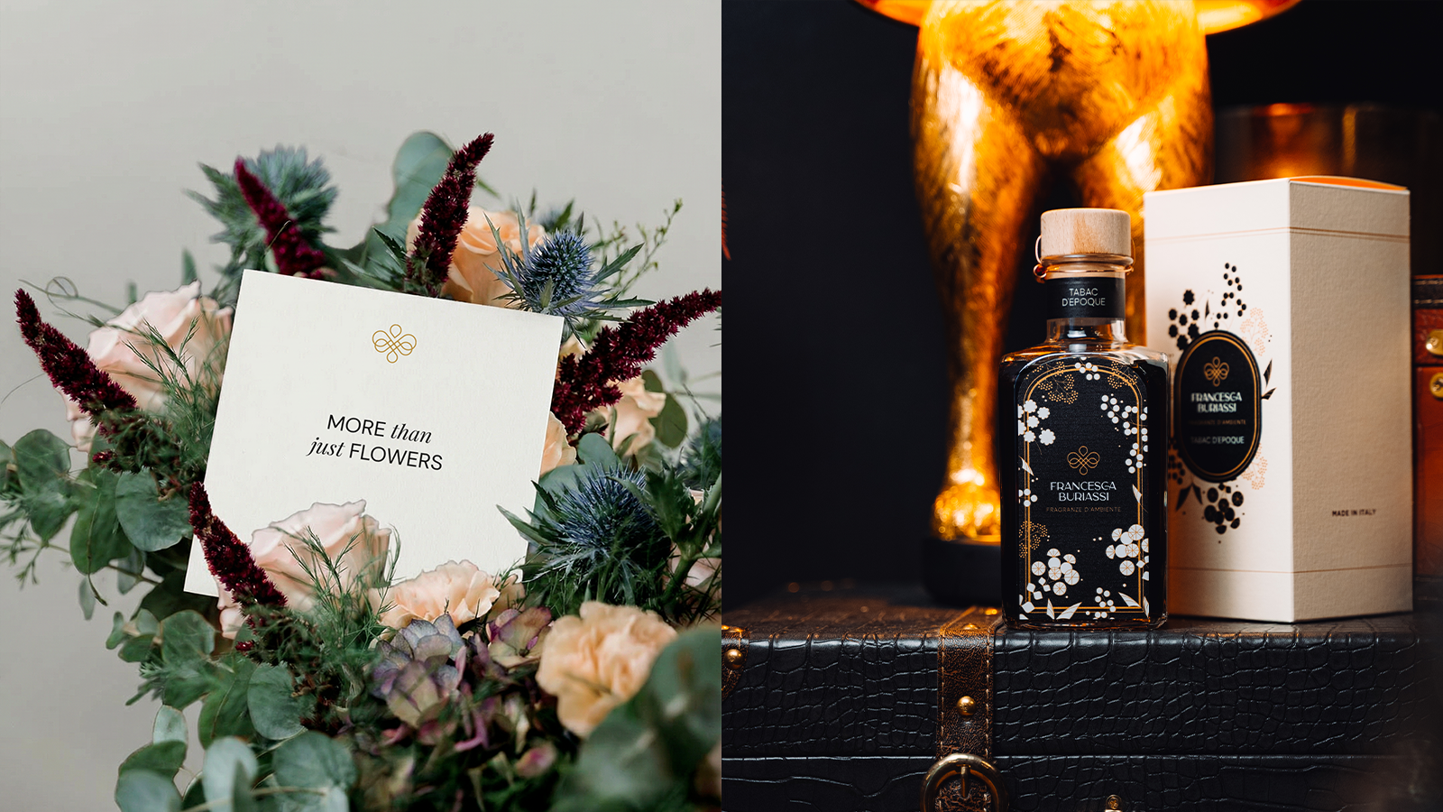 弗朗西斯卡·布里亞西是一位義大利花藝設計師,以其獨特的風格和融合自然、氛圍與精緻細節的作品而聞名。此包裝設計專案的目標是打造一個統一的品牌形象,涵蓋從花藝擺設到家居香氛的整個感官世界。