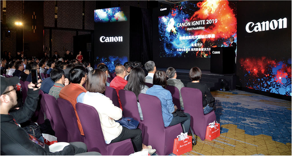 數位印刷時代來臨,全球光學影像知名品牌Canon掌握潮流趨勢,以影像核心技術積極發展先進的輸出設備與開拓台灣市場,隨著文化、創意與產業的多元激盪與崛起,藝術印刷領域與商業輸出需求朝向更細膩而多元的整合發展,因此Canon商務解決方案事業群(BIS)旗下專業印刷產品事業處,於去年11月21日已在台北新板希爾頓酒店宴會樓,舉辦「Canon IGNITE 2019: Vivid Possibilities」Canon大圖輸出設備imageRROGRAF PRO系列體驗卓越科技與解決方案亞洲新產品發表會,其跳脫媒材與輸出色彩的窠臼與侷限,展現最新列印技術、多元輸出媒材與設計人,三方所激盪出的成果,並吸引Canon全亞洲和全台灣經銷商前來參觀。