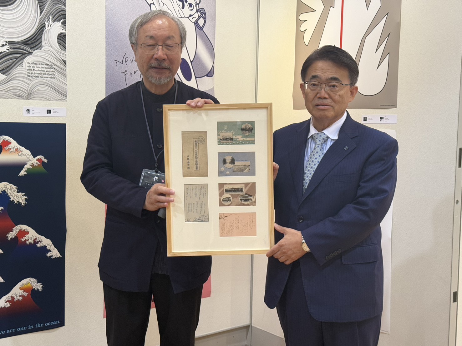 另外林磐聳教授特別準備昭和五年(1930年)名古屋市民一百萬人口紀念大會繪葉書,一套五張明信片裝裱,並於背面書寫本次展覽活動歷程,贈送愛知縣知事作爲紀念。